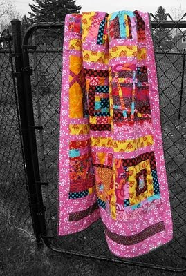This is about a month before my daughter's second birthday. I decide to make a quilt for her. I am kind of an artsy sort (although a totally-untrained-just-for-fun-artsy-sort) and I had painted a colourful series of paintings for each of my children's rooms. I figure that a quilt will be a nice compliment to the deco. And I have a sewing machine packed away in a closet that was a gift from my mother-in-law. I can try a quilt. Why not? I mean I took Home Ec back in Grade 9 a few eons ago.